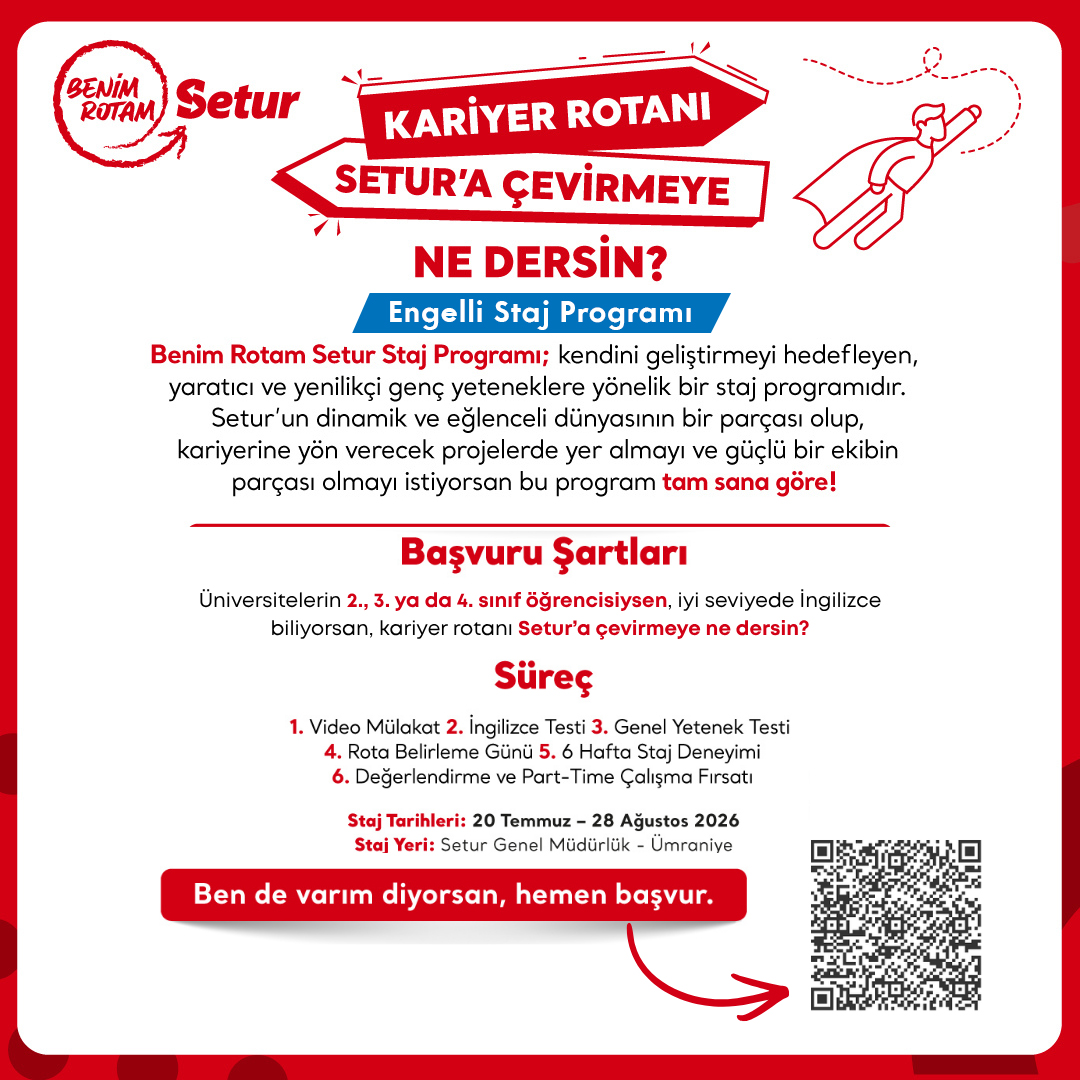 Engelsiz Staj Fırsatı: Setur “Benim Rotam Setur” Staj Programı Başvuruları Açıldı